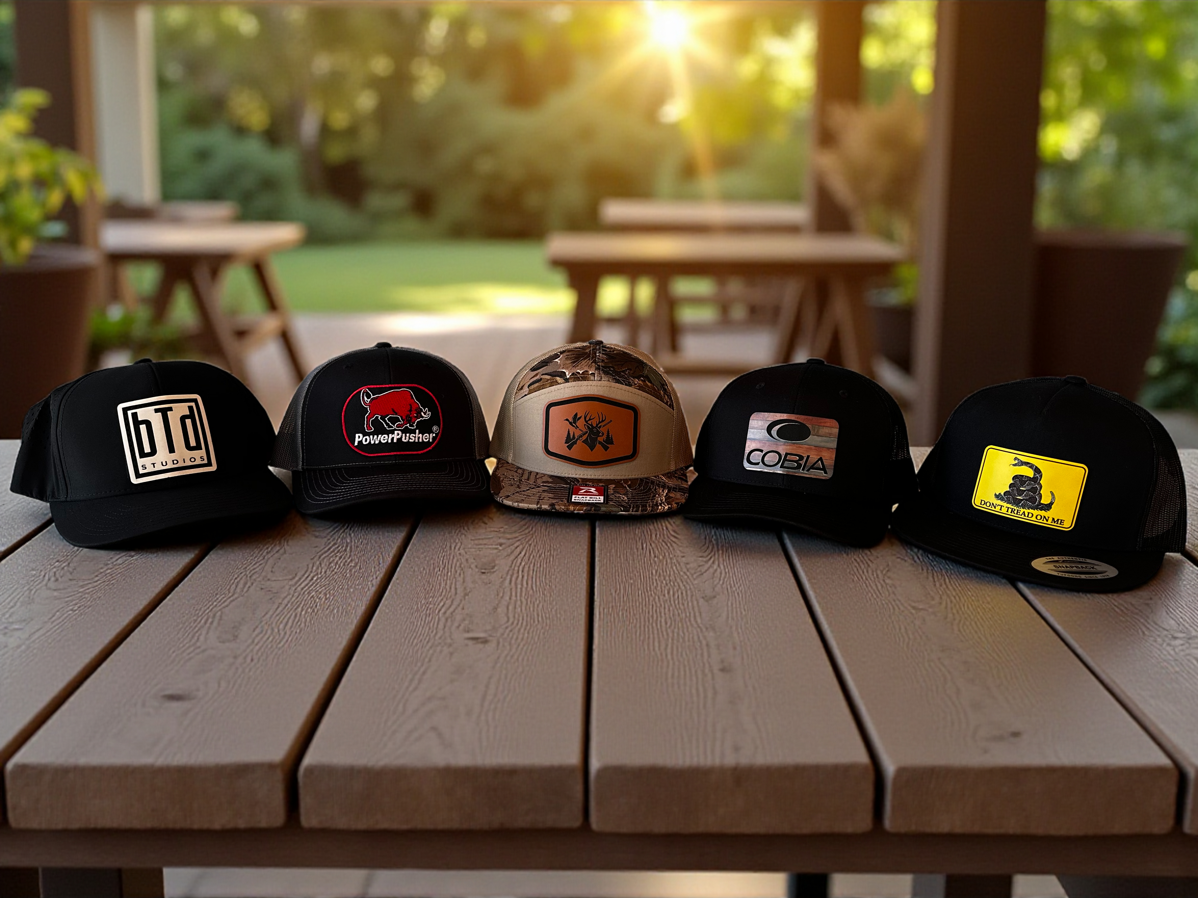 Pick your hat, drop your logo, and we’ll slap on a patch that means business.